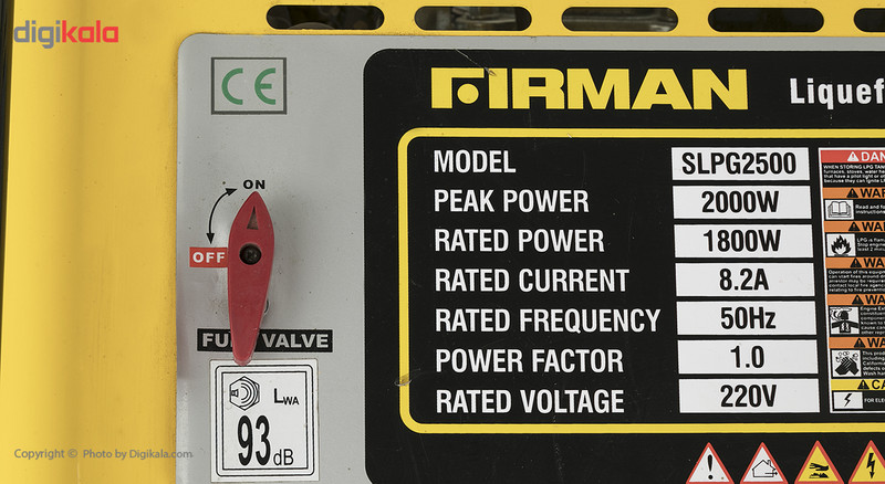 - دارای ولتمتر - پریزهای دارای درپوش - فاکتور قدرت: 1 - سوخت LPG - اتصال مستقیم به کپسول گاز