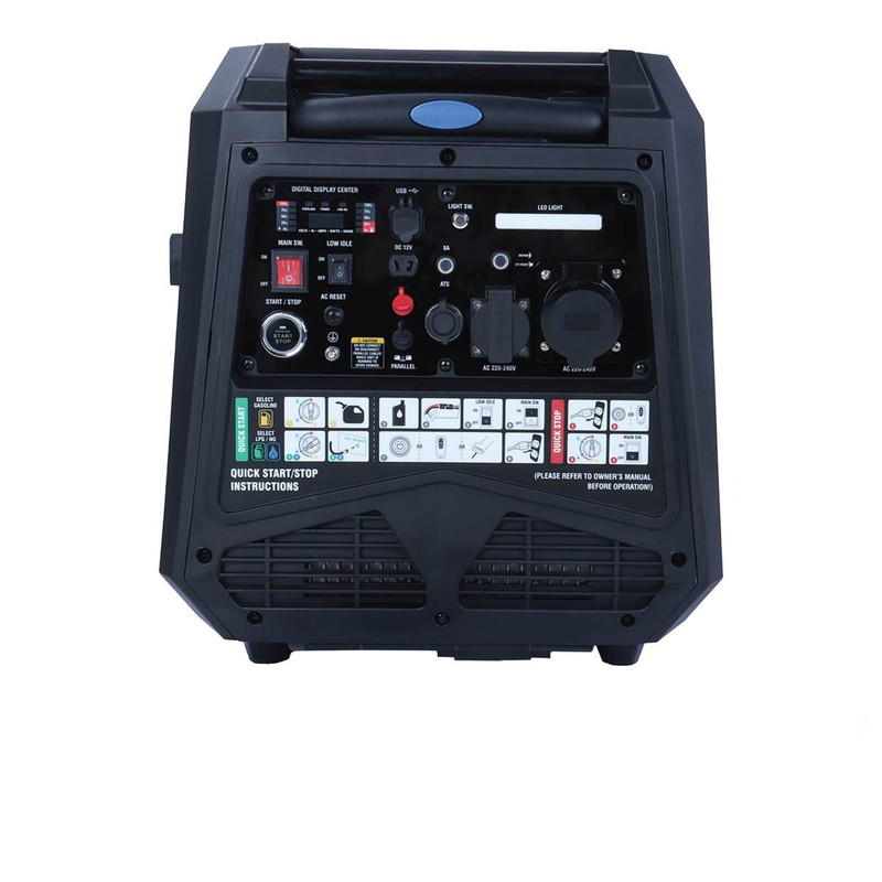 استارت الکتریکی , استارت دستی , تکفاز , دارای چرخ , ولتاژ خروجی 12 ولت DC , سیستم خنککنندگی از راه هوا , ولتاژ ورودی AC