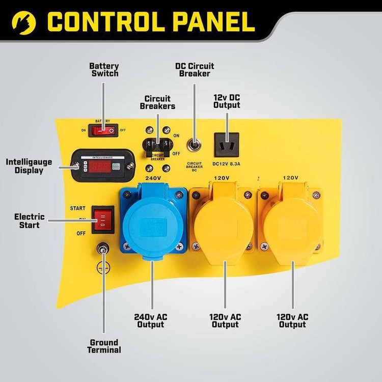 استارت دستی , تکفاز , دارای چرخ , سیستم خنککنندگی از راه هوا , ولتاژ خروجی 12 ولت DC